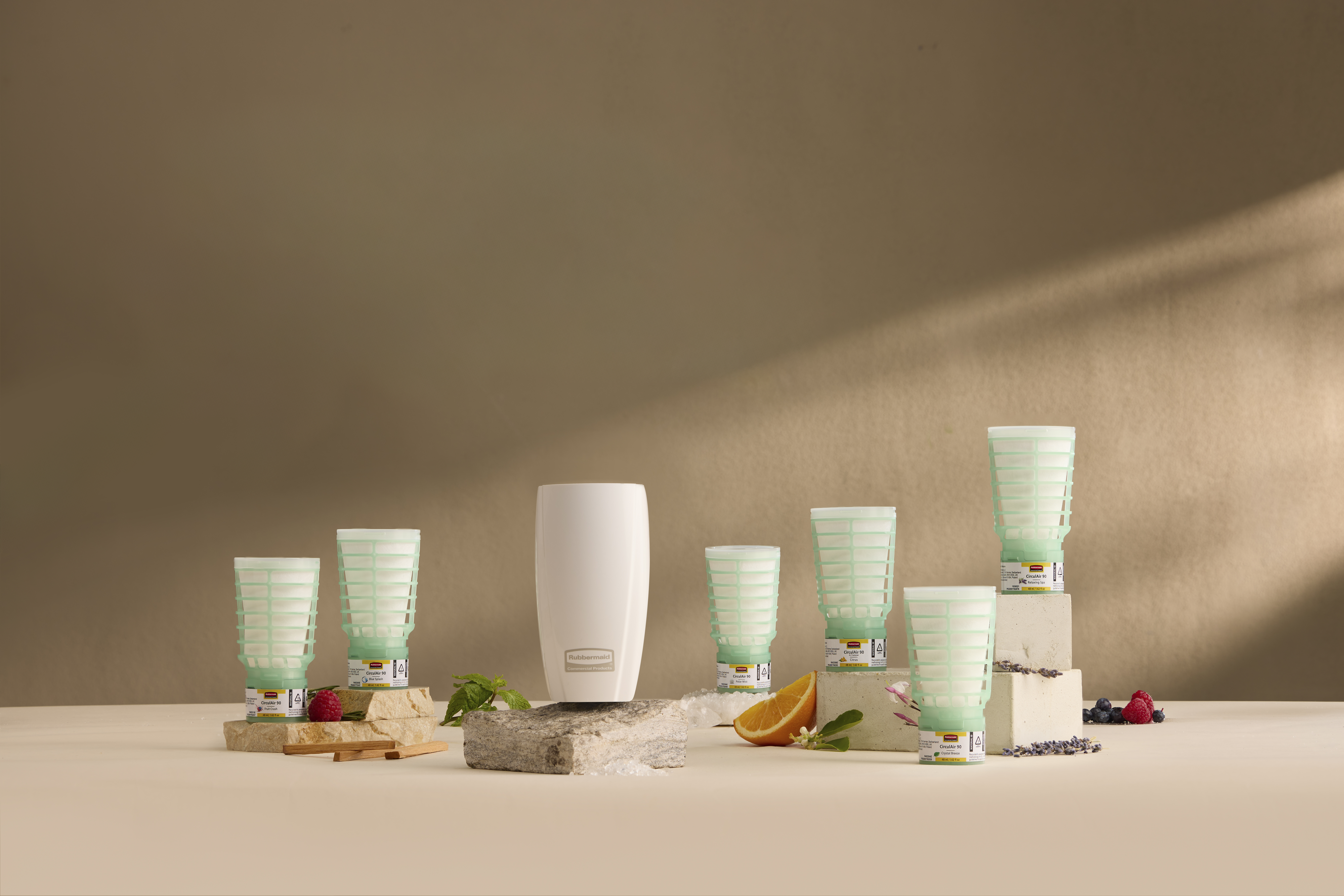 CirculAir 90™ represents a fresh approach to commercial air care. By harnessing natural airflow to distribute fragrance, it eliminates the need for batteries, reducing raw materials and simplifying recycling for end users.