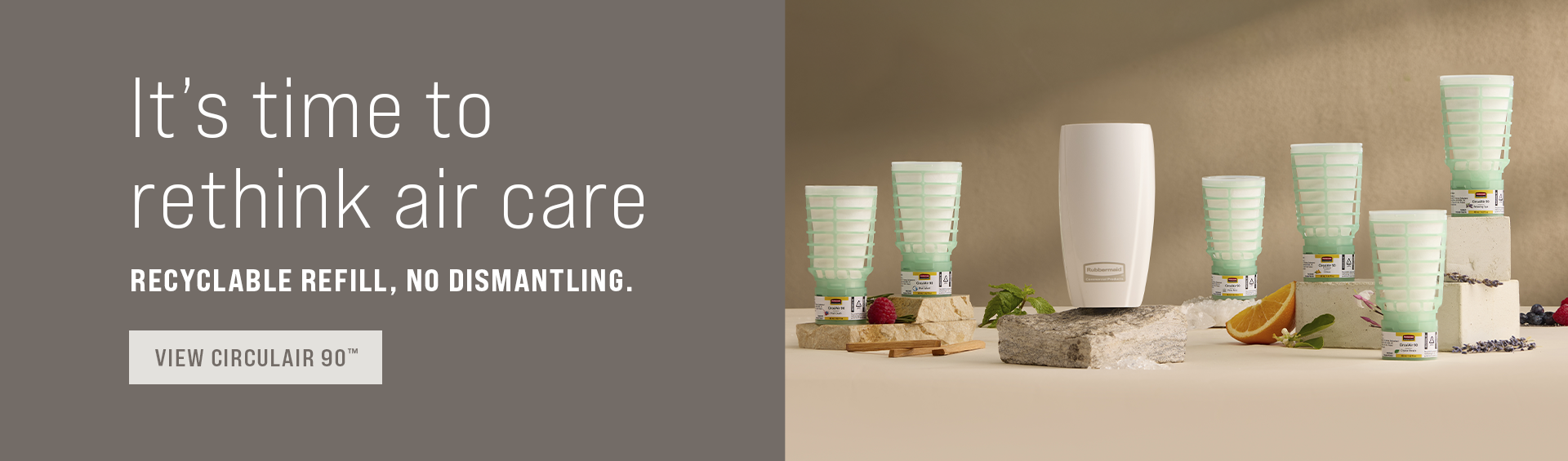 With the same dispenser, fragrance selection and SKUs, making the switch to the recyclable, battery-free CirculAir 90™ is easy.